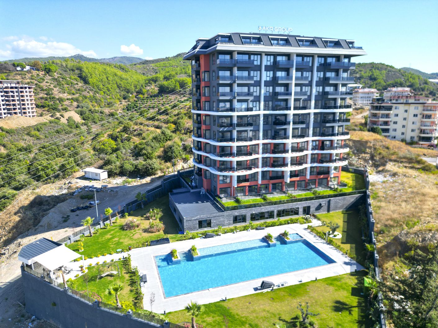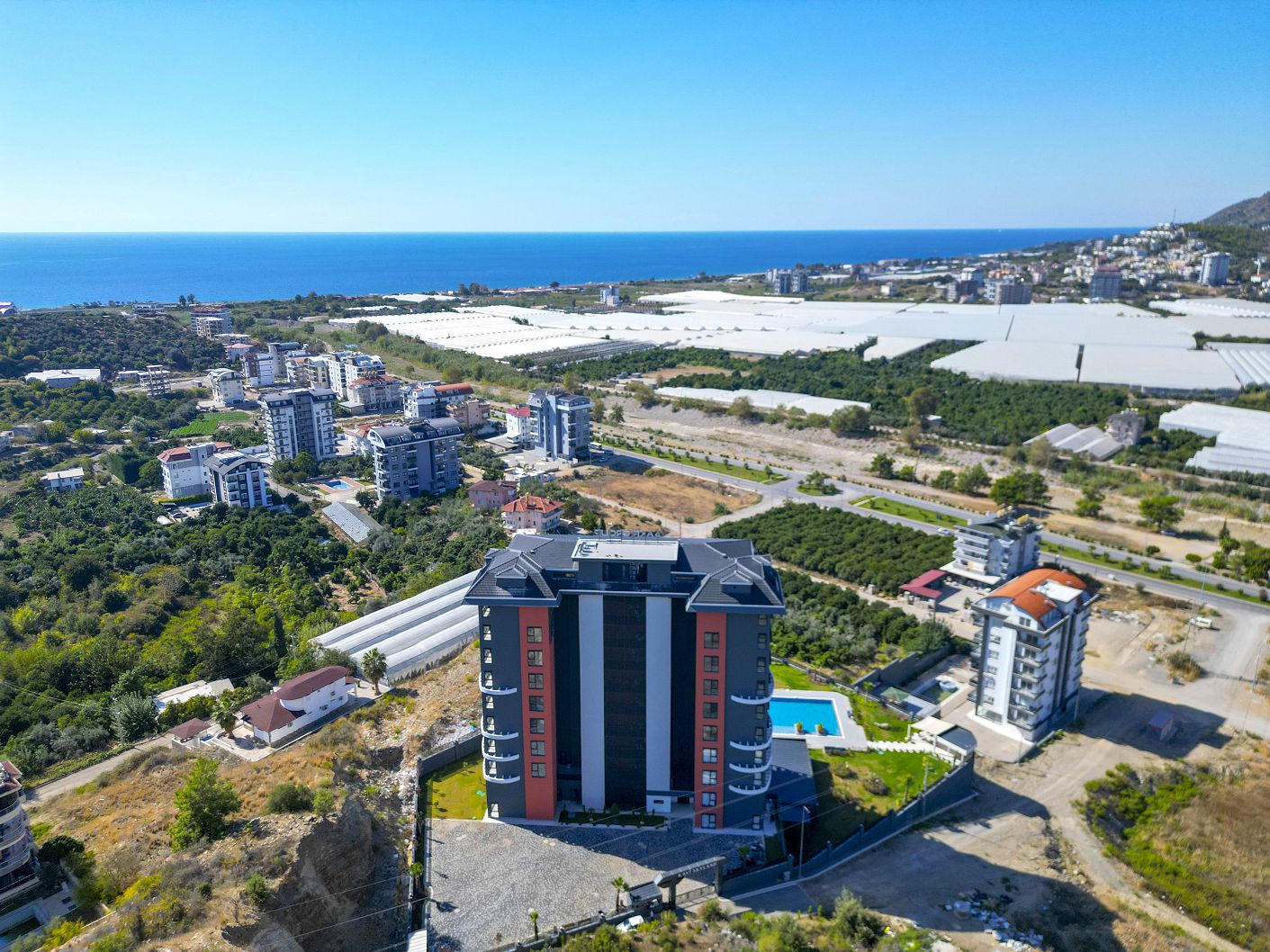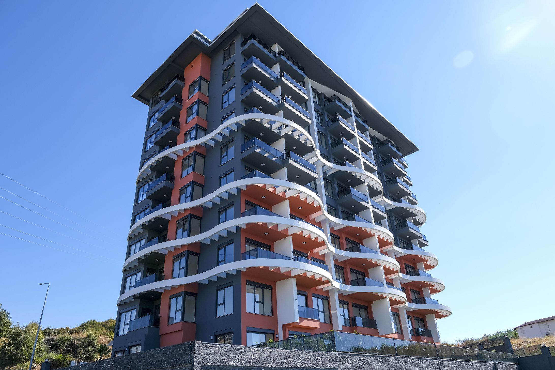 The complex with a total area of 4,227 m2 consists of one 7-storey block in a fenced area. Stylish design, picturesque views of mountain landscapes, proximity to the Sapadere Canyon, the ancient city of Siedra and a stalactite cave, an ecologically friendly and quiet area away from the noisy centre of the resort, sandy beaches are perfect for permanent residence and an interesting vacation at any time in the bosom of nature. It is a good investment option at the initial stage of construction.