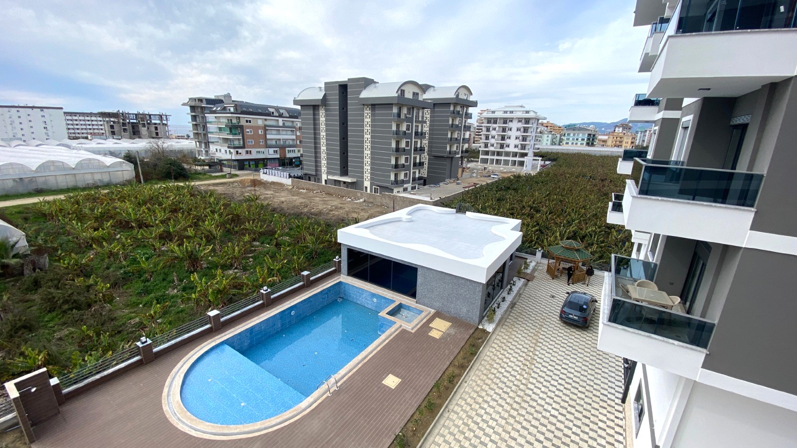 The complex, with a total area of 2,300 m2, consists of two 5-storey blocks on a fenced-in territory with views of the mountains and the coast. Modern design, well-developed infrastructure, a kindergarten 100 meters away, nearby chain stores, a Friday bazaar, a public transport stop, a vegetable shop, a fish shop, a school, and other social facilities in the resort, as well as an environmentally friendly area – all of this will be appreciated by both those who prefer a comfortable lifestyle and a relaxing vacation, and those who prefer an active lifestyle. The well-equipped embankment, beaches, and municipal recreation park with a barbecue area are only 400 meters away. This is an interesting investment opportunity in an actively developing area.