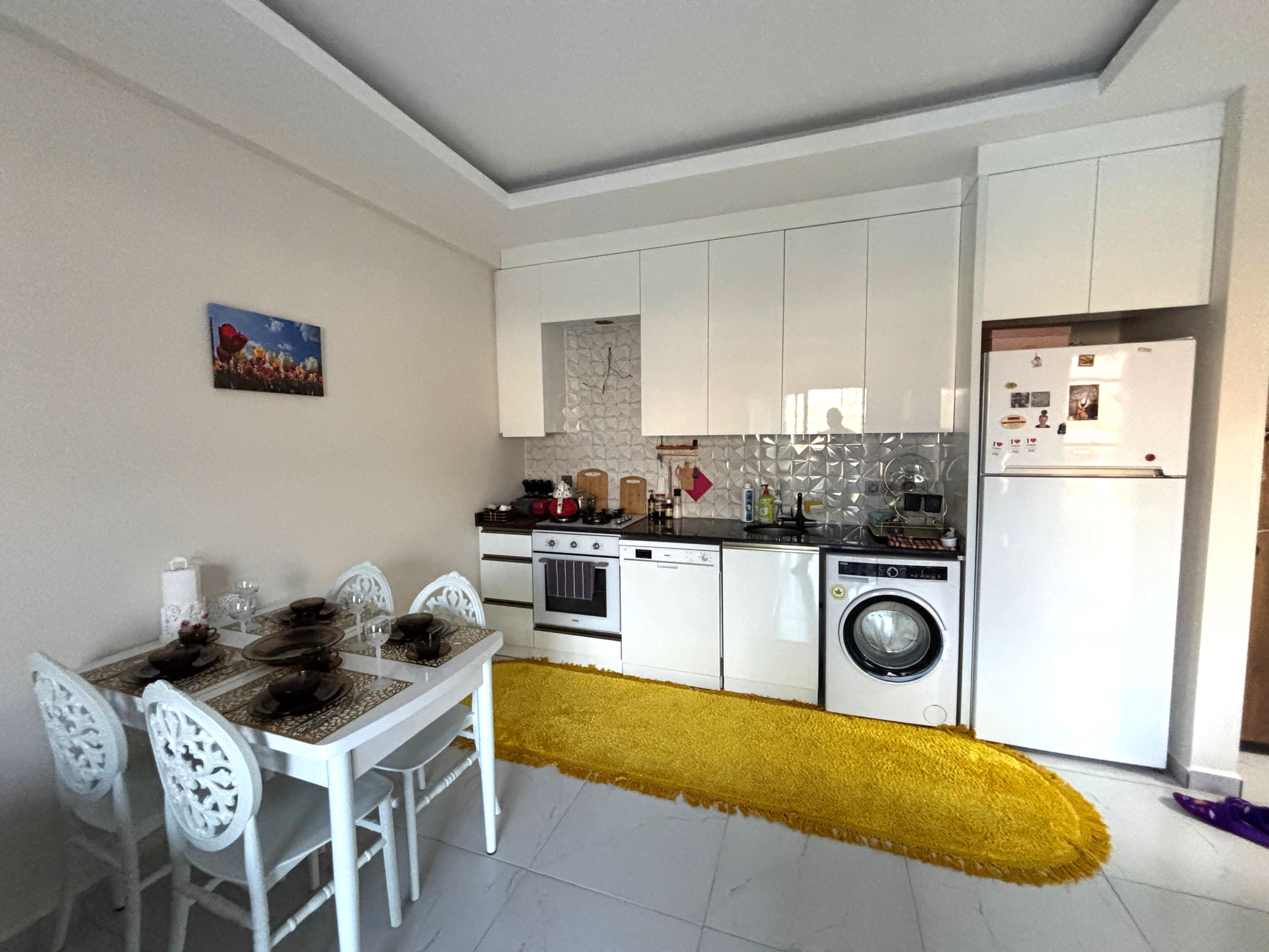 • 1+1 apartment – 51 m2, 3 floor (level 5), block A, north side, 1 living room with an American-type kitchen, 1 bedroom, hallway, 1 bathroom, 1 balcony, with furniture and household appliances, mountain view, aidat – 50€.