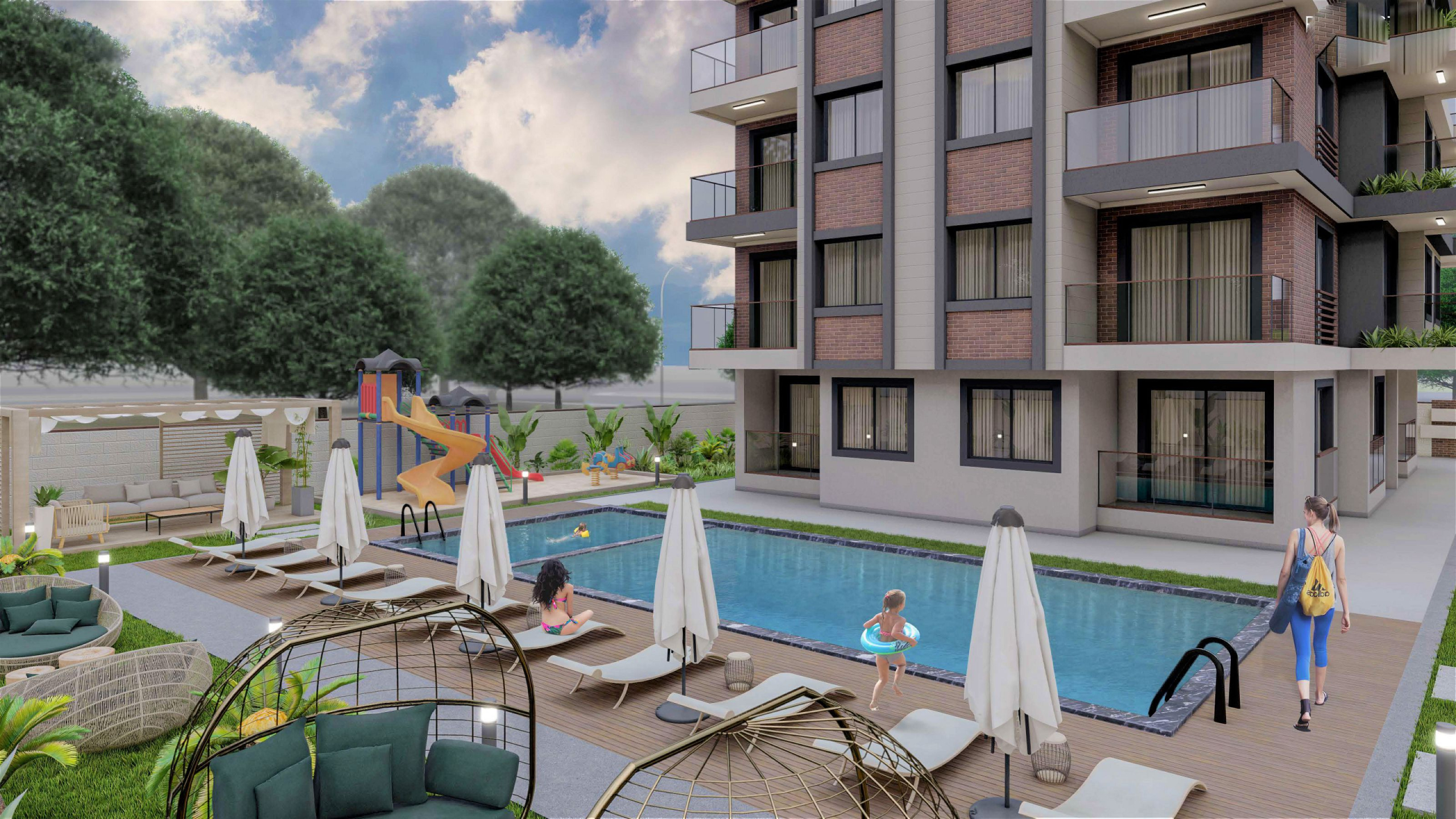 The cozy boutique complex with a total area of 1,261 m2 consists of one 6–storey block in a landscaped fenced area. Walking distance to wonderful sandy beaches, a well-equipped promenade and marina, chain stores, cafes, schools, public transport stops, beautiful views of the peaks of the Taurus Mountains, modern design, a great option for living or relaxing at any time of the year with your family in an ecologically clean area. An interesting option under construction in an area with an international airport.