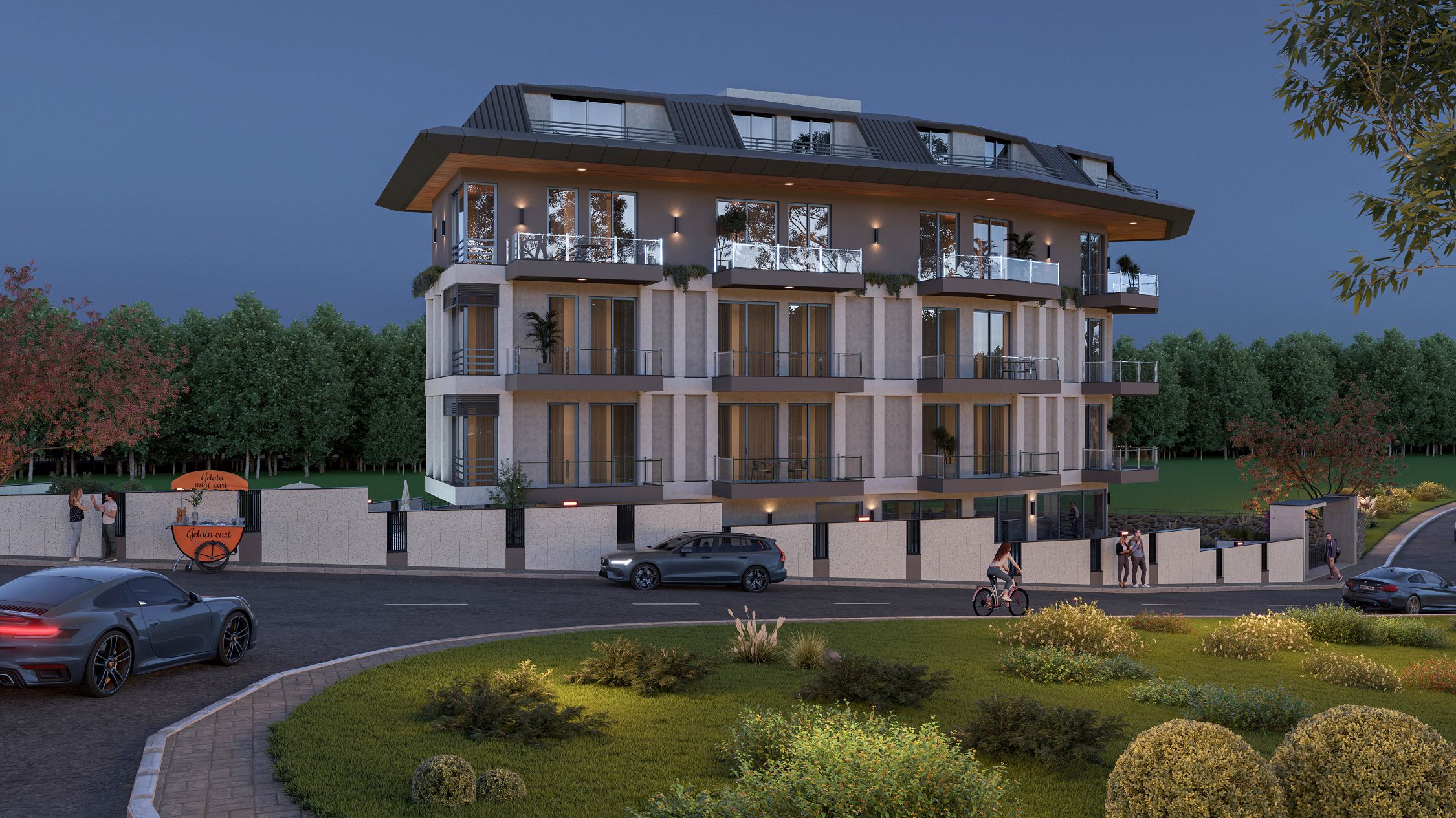 Apartments and duplexes in a small boutique complex with infrastructure at the start of construction just 600 meters from Cleopatra beach in the area of Alanya – Saray (Saray–Dinek).