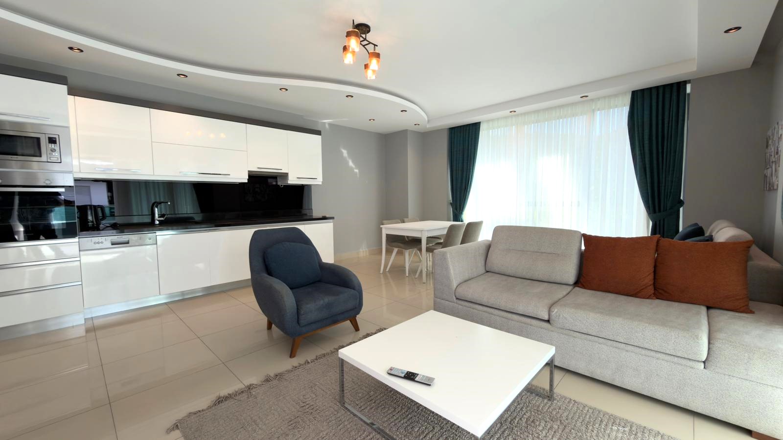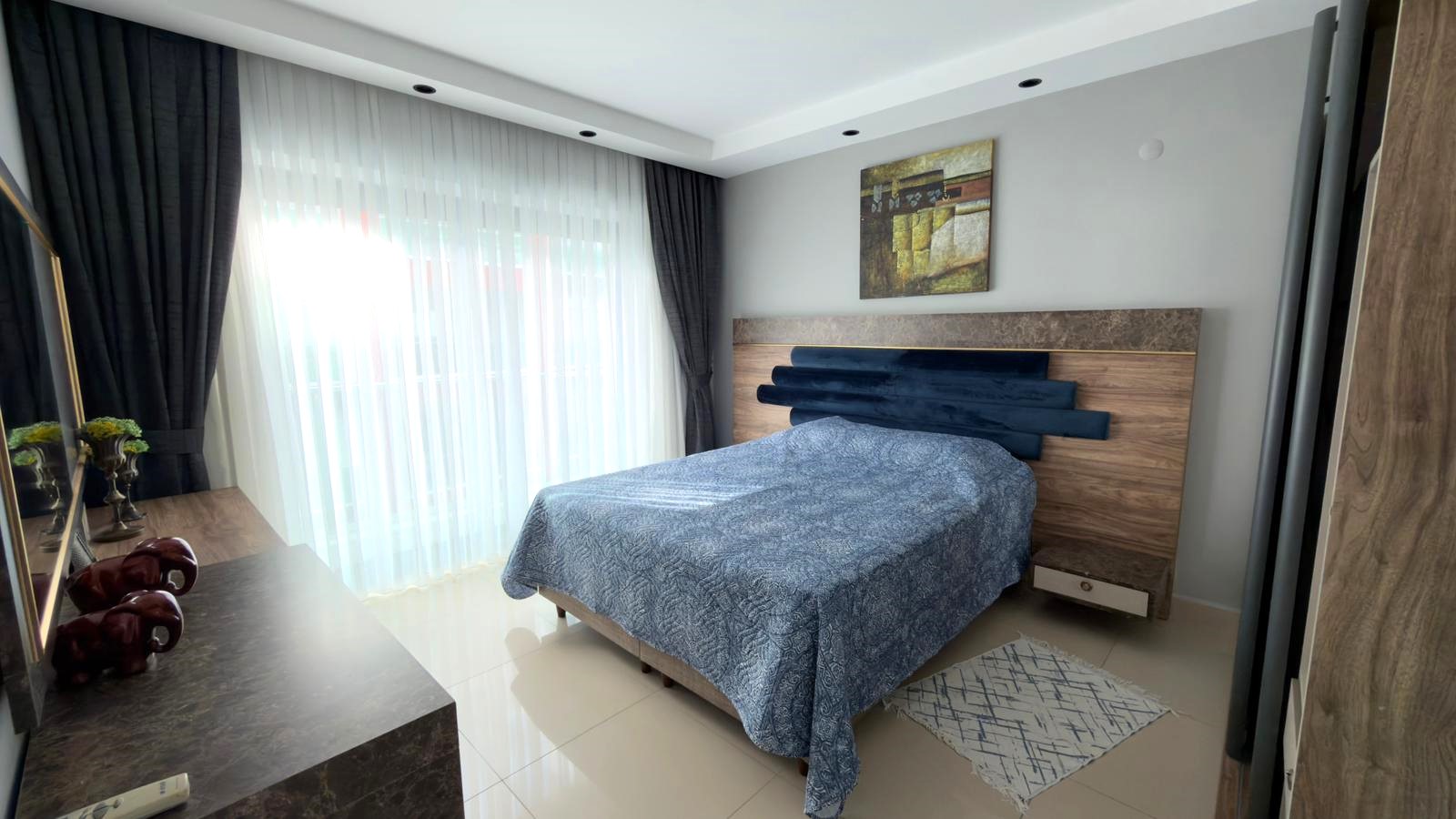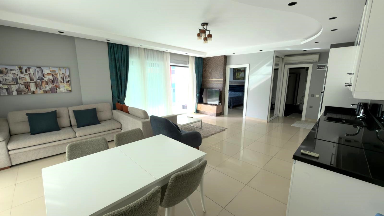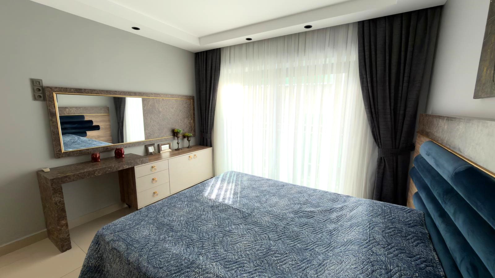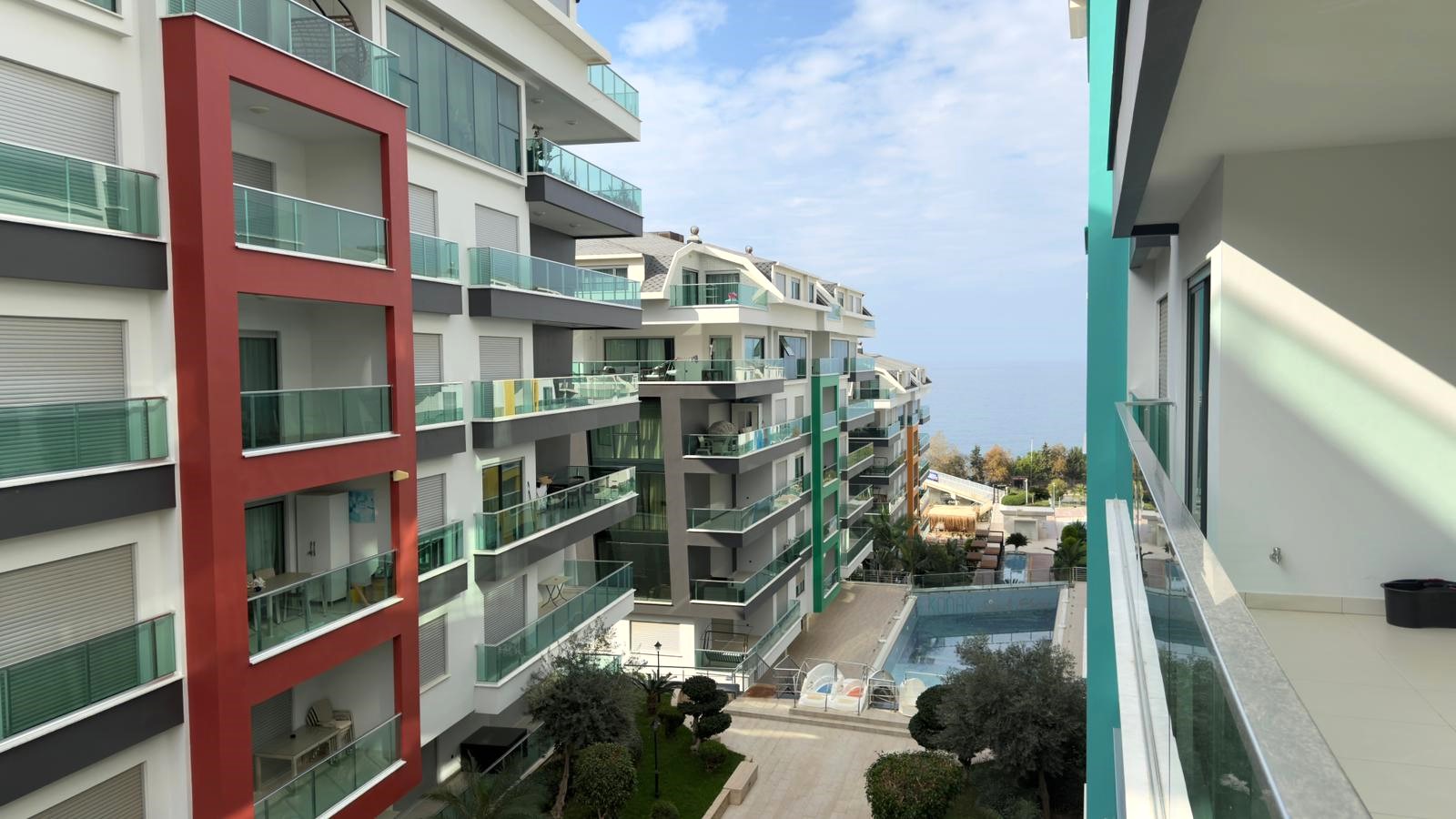 Warm and spacious furnished 1+1 apartment with side sea view in the premium complex in Alanya – Kargicak area.