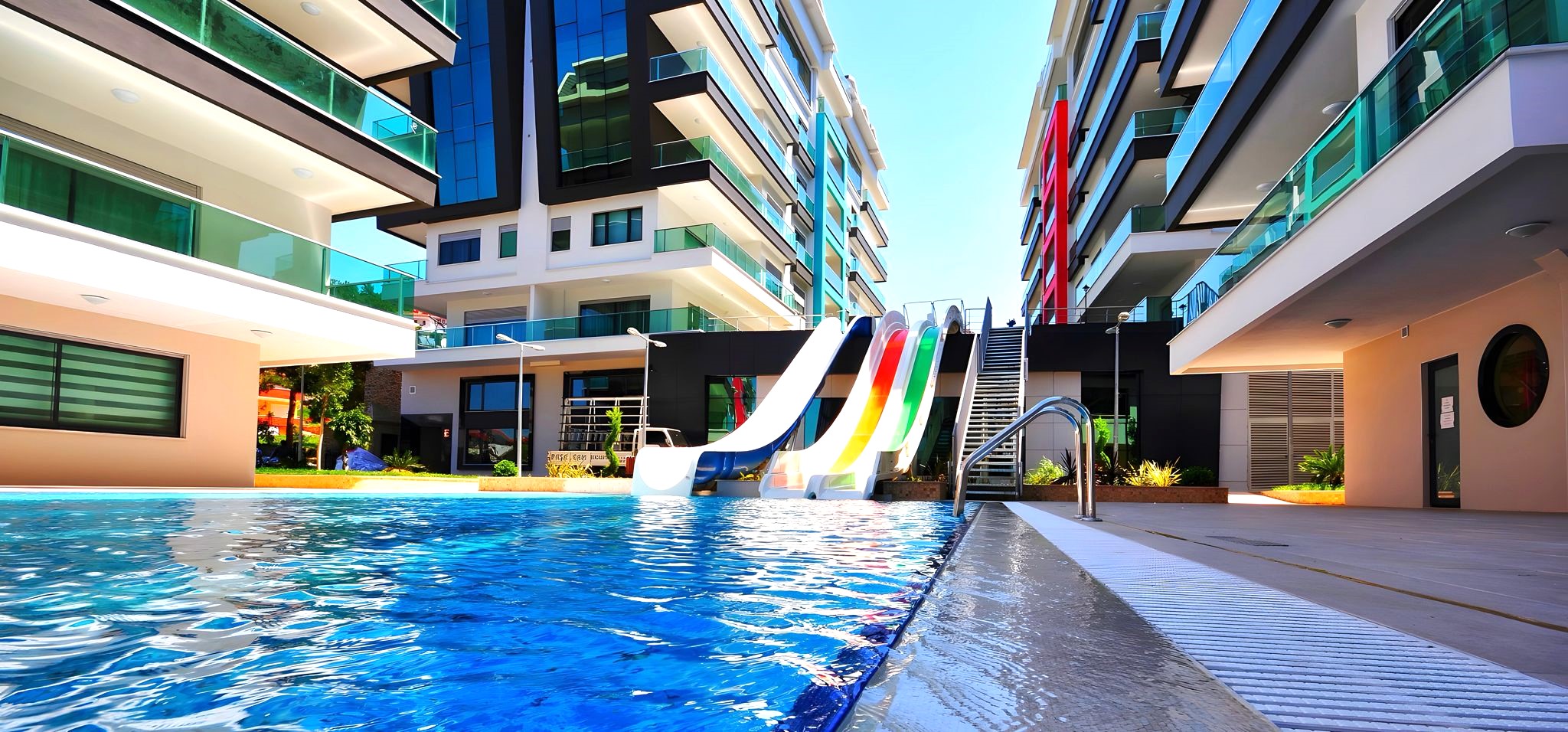 • outdoor pool with water slides