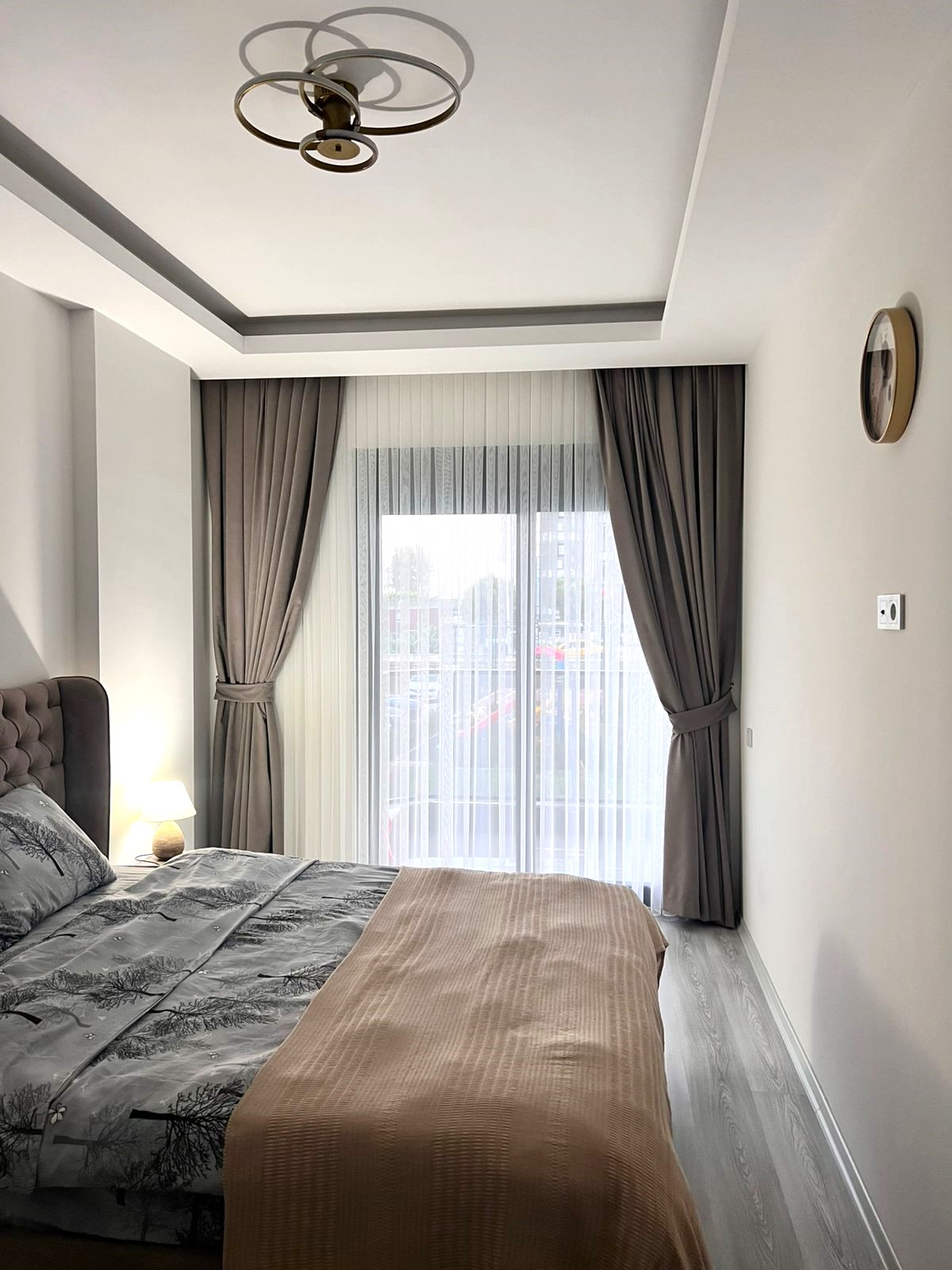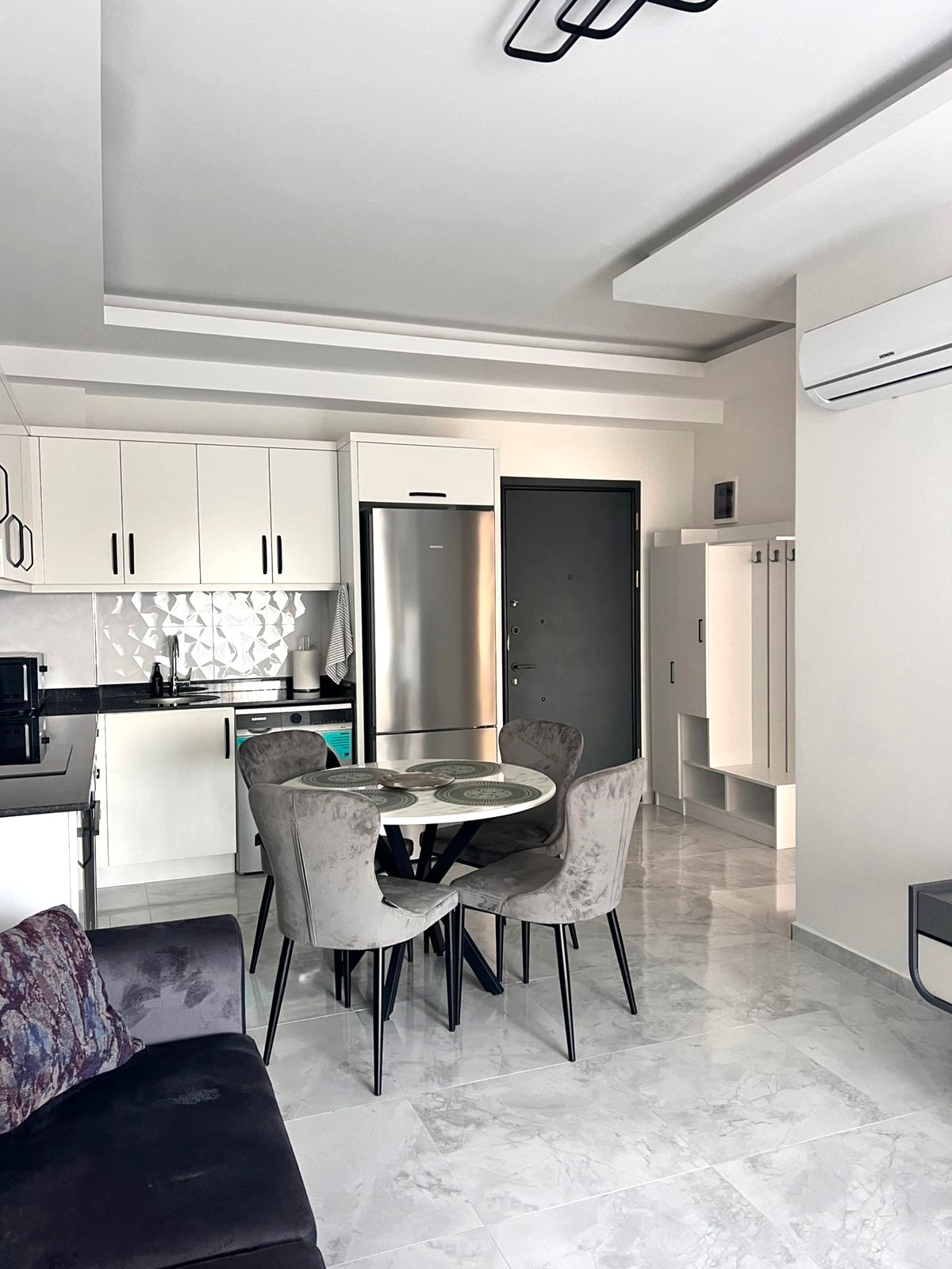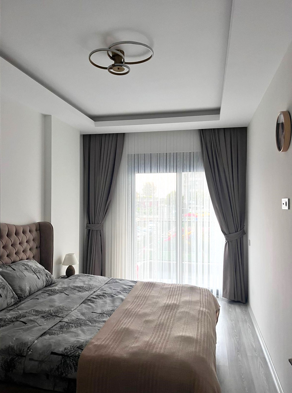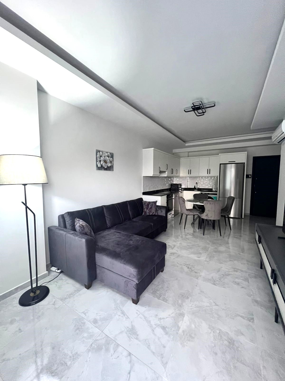 • 1+1 apartment – 53.5 m2, block B, 0 floor (2.5 level), south side, 1 living room with American kitchen, 1 bedroom, 1 bathroom, 1 balcony, with furniture and Siemens appliances, aydat – 2.000 tl.