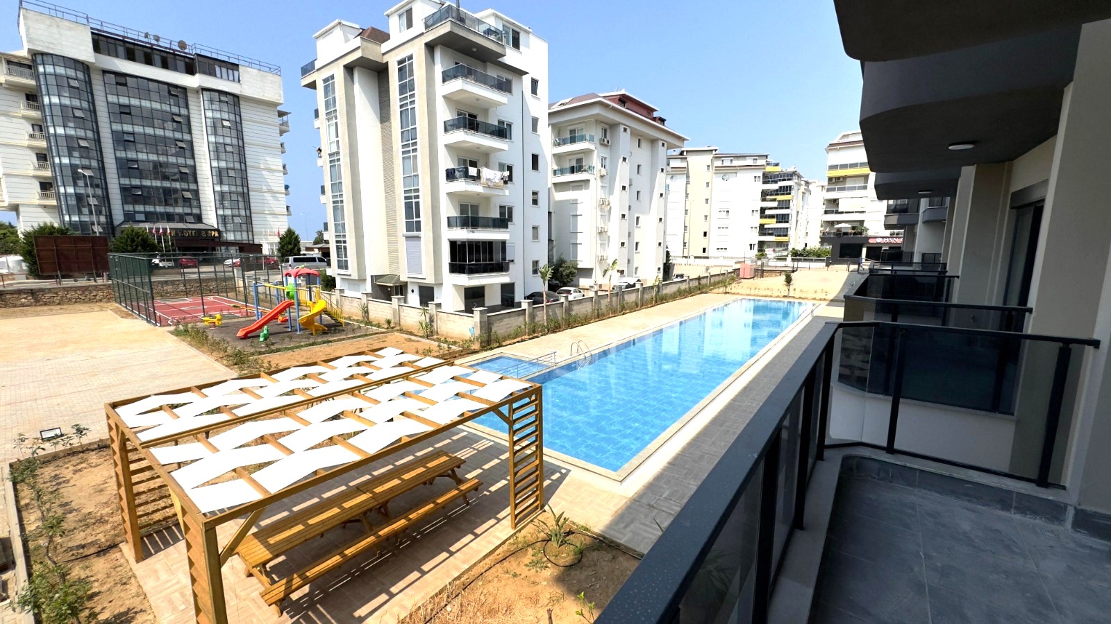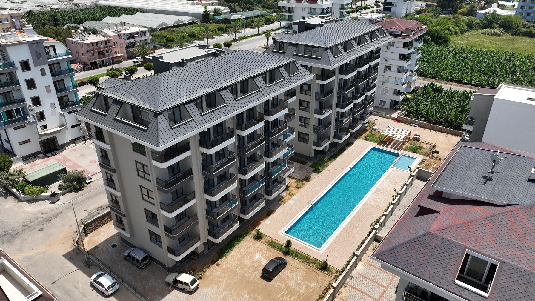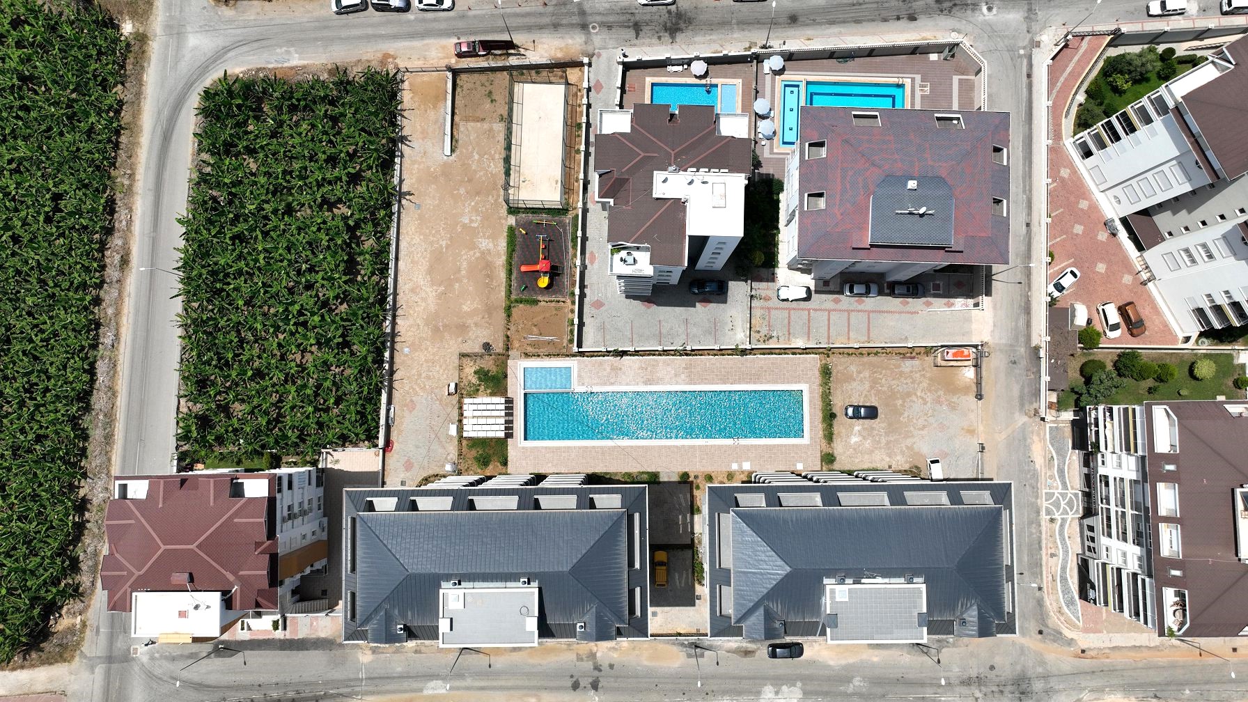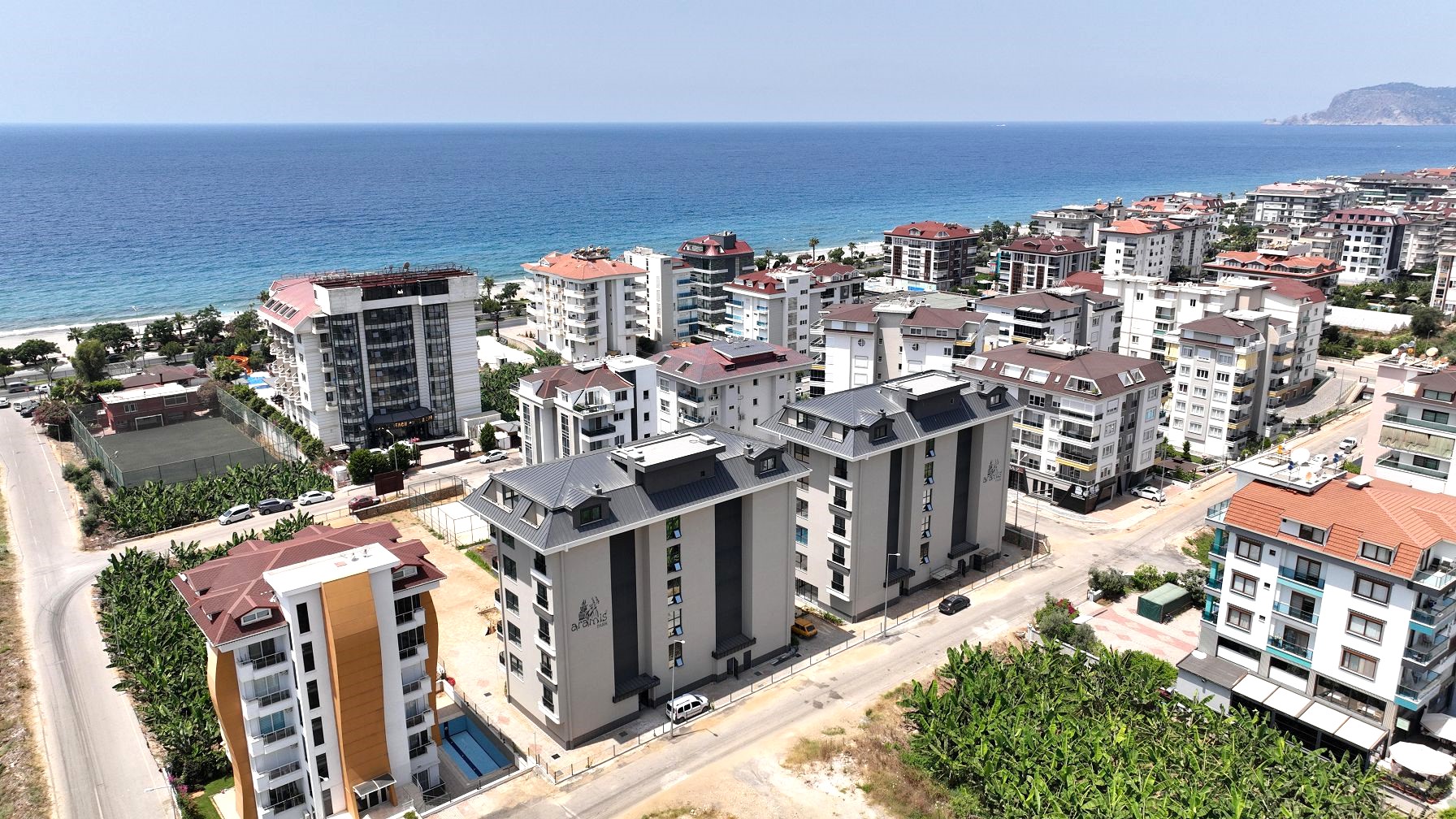 The new complex has a total area of 3,205 m2 and consists of two 5–storey blocks in a fenced area. Excellent location on the first coastline, modern design and architecture, finishing in neutral tones, all the necessary infrastructure for recreation and comfortable living, walking distance to chain stores, cafes and restaurants, pharmacies, public transport stops, a children‘s playground and other social facilities of the resort. The historic center of Alanya can be reached within 10 minutes, and Gazipasa International Airport is just 30 minutes away. An attractive option on the first coastline for permanent residence or vacation in a quiet area with universities and a Russian school.