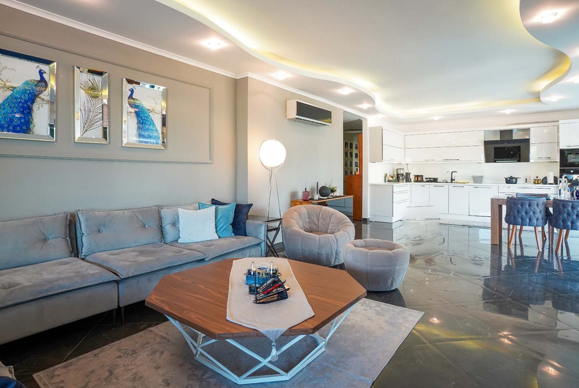 Двухэтажные меблированные апартаменты планировки 5+1 с тремя спальнями и видом на бассейн в комплексе премиум-класса в центральном районе Аланьи – Оба.