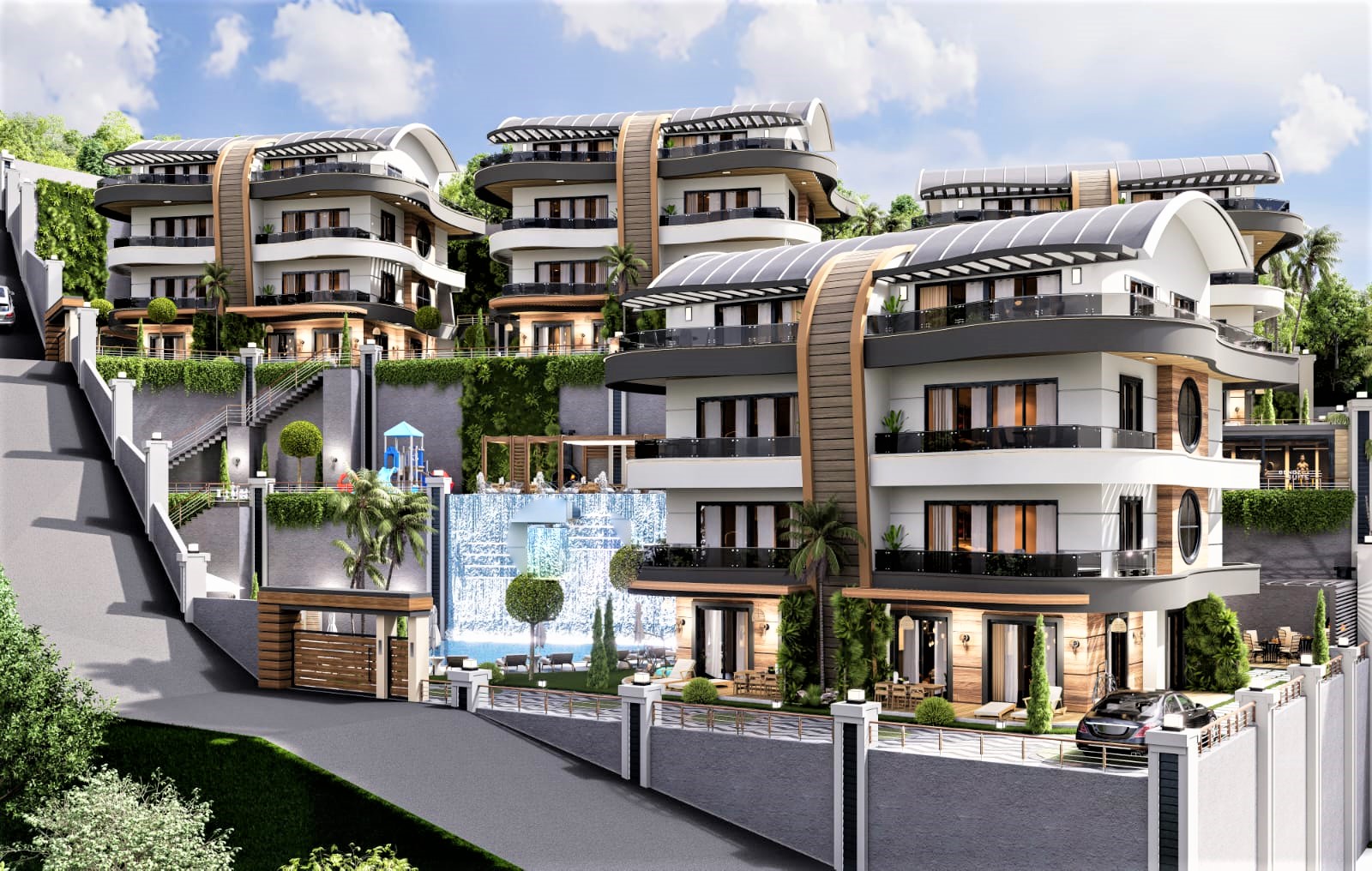 Комплекс общей площадью 5 444 м2 состоит из четырёх 4-этажных блоков на огороженной территории и находится среди частных вилл и соснового леса недалеко от небольшого горного водопада. Приватное расположение и спокойная атмосфера в стороне от шума курорта, прекрасные виды на античную крепость, зелень Торосских гор и побережья, вся необходимая для жизни и отдыха инфраструктура. Замечательное сочетание транспортной доступности к социальным объектам города – в пешей доступности находятся магазины, кафе и рестораны, школы и лицеи, а также парк отдыха. Исторический центр находится всего в 2 километрах с его торговыми центрами, восточными и рыбным базарами, спортивными центрами и городскими парками, что удобно для постоянного проживания семьи или проведения отпуска.