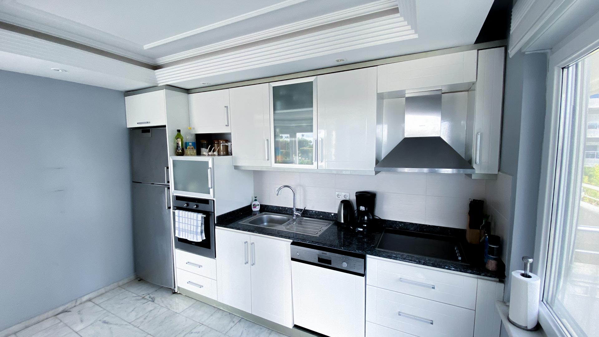 Меблированные просторные апартаменты с двумя спальнями в комплексе премиум-класса на первой линии от собственного песчаного пляжа в прибрежном районе Аланьи – Тосмур.