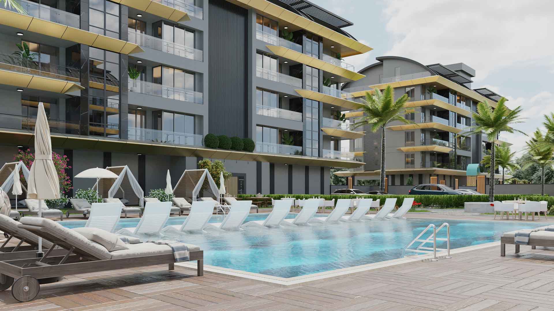 Комплекс общей площадью 6 686 м2 состоит из трех 5-этажных блоков на огороженной территории с видами на горы. Песчаные пляжи Средиземного моря и обустроенная набережная находятся всего в 200 метрах. Новый район с пятиэтажной застройкой, современный дизайн, вся необходимая инфраструктура комплекса, пешая доступность сетевых магазинов, муниципального барбекю-парка, поликлиники, почты, футбольного поля, остановки городского транспорта, школы, экологически чистый район. Интересный вариант как для постоянного проживания, так и проведения отпуска. Инвестиции на стадии проекта.