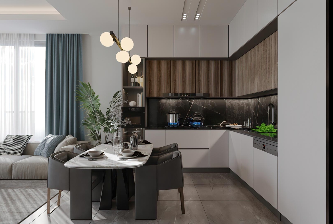• встроенный кухонный гарнитур с гранитной рабочей поверхностью