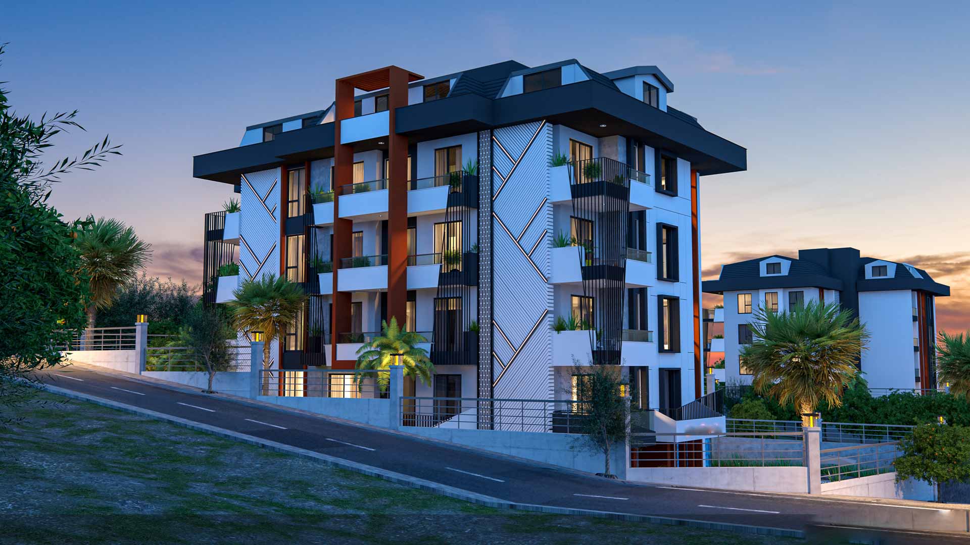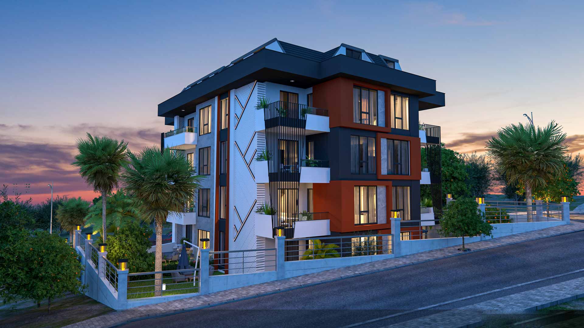 Комплекс общей площадью 1 136 м2 состоит из одного 4-этажного блока на огороженной территории. Виды на античную крепость и Торосские горы, просторные планировки и современный дизайн, сочетание транспортной доступности к пляжу Клеопатры и близости социальных объектов курорта (сетевые магазины, кафе, ресторан Zencefil, торговые центры, городская больница, восточный рынок, школы, спортивные центры, городские парки) удобны для постоянного проживания семьи. Перспективный вариант для инвестиций на начальной стадии строительства.