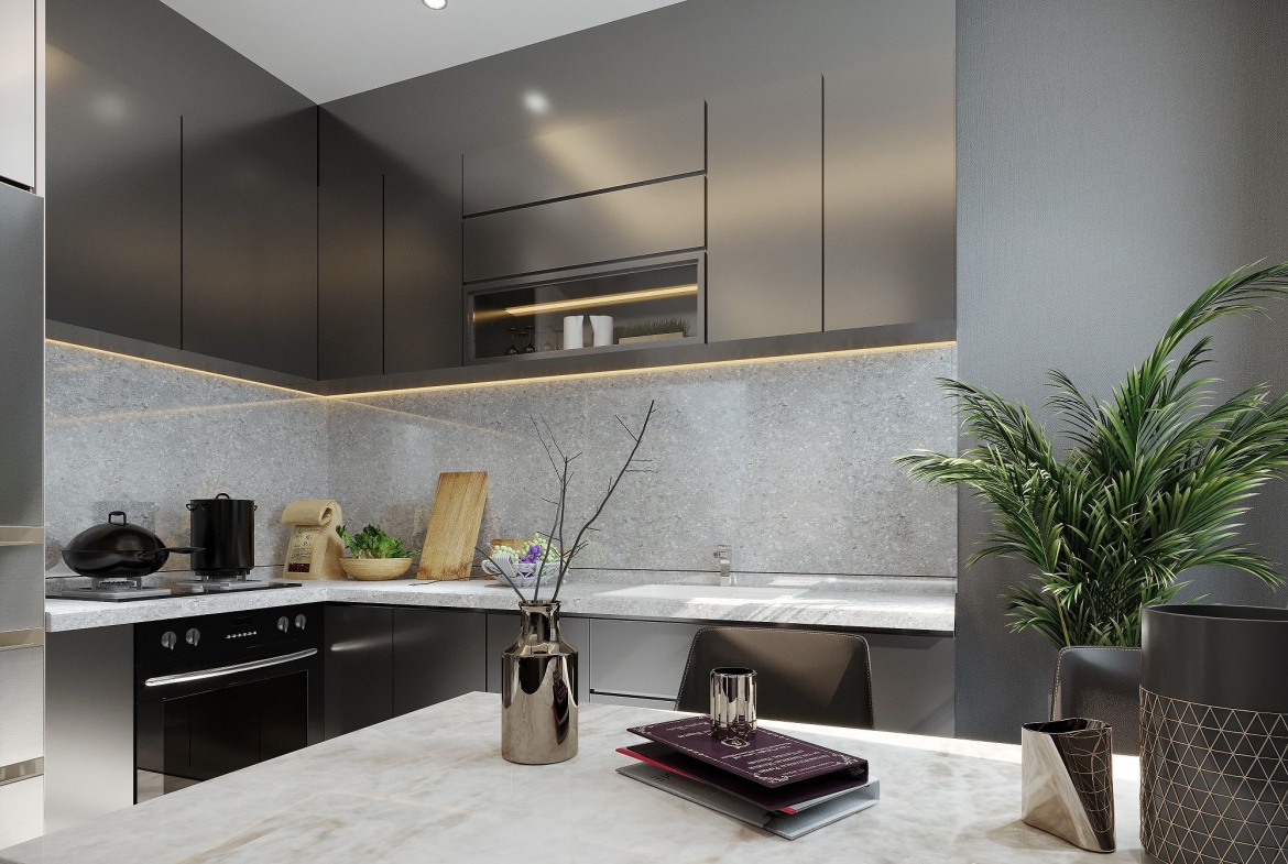 • встроенный кухонный гарнитур с гранитной рабочей поверхностью