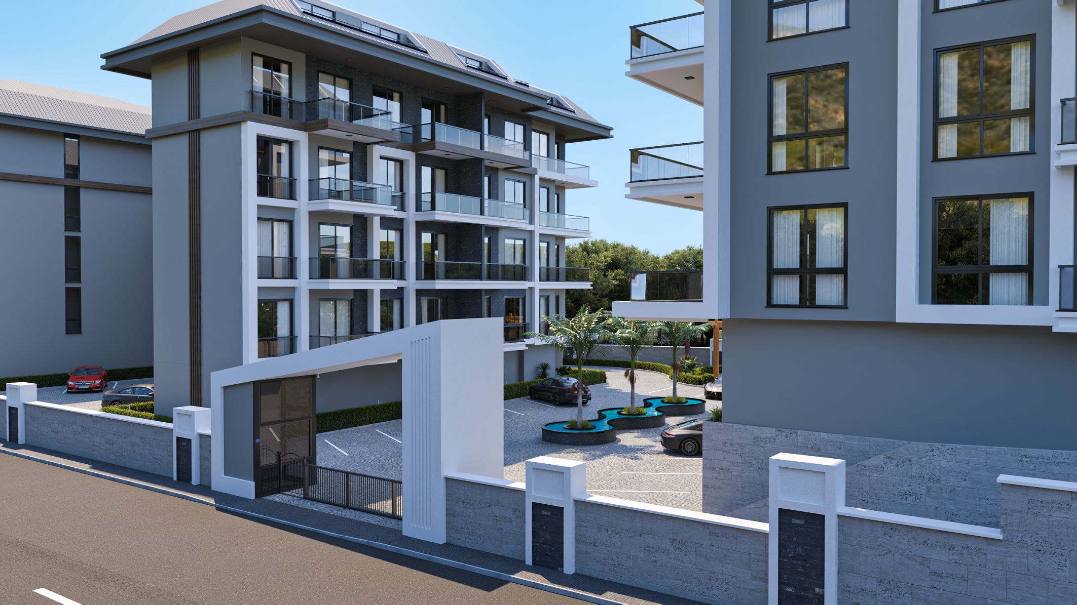 В проекте два 4-этажных жилых блока на охраняемой территории общей площадью 4 500 м2. Рядом комплексом будет находиться большой муниципальный парк и теннисный корт, школа, сетевые магазины. Продуманные планировки, современный дизайн, инфраструктура пятизвёздочного отеля подходит как для постоянного проживания, так и для комфортного отдыха в стороне от шумного центра курорта. Хороший инвестиционный вариант на стадии проекта в экологически чистом районе с фруктовыми садами.