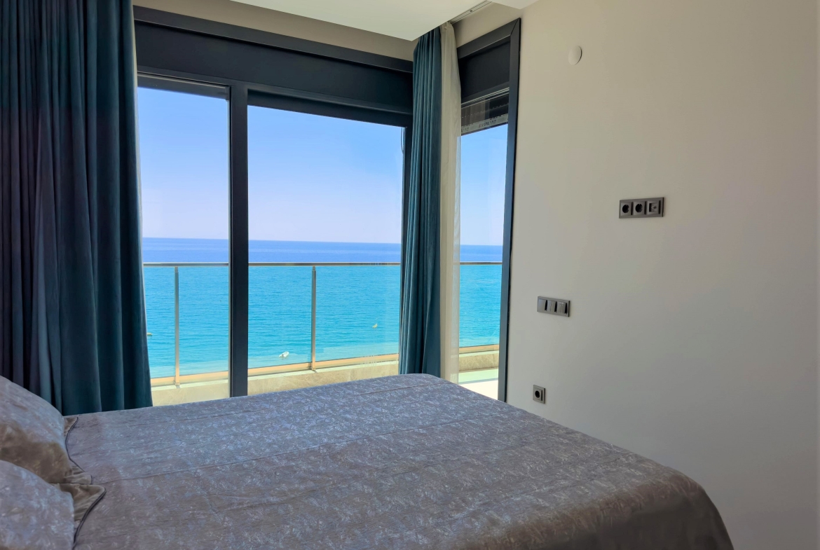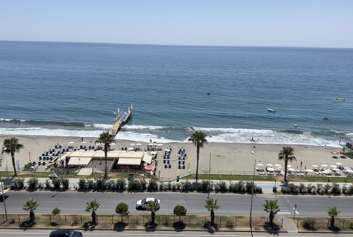 Меблированные апартаменты с одной спальней и прямым видом на море в комплексе премиум-класса “KONAK SEASIDE TOWER” на первой береговой линии в начале района Аланьи – Махмутлар.