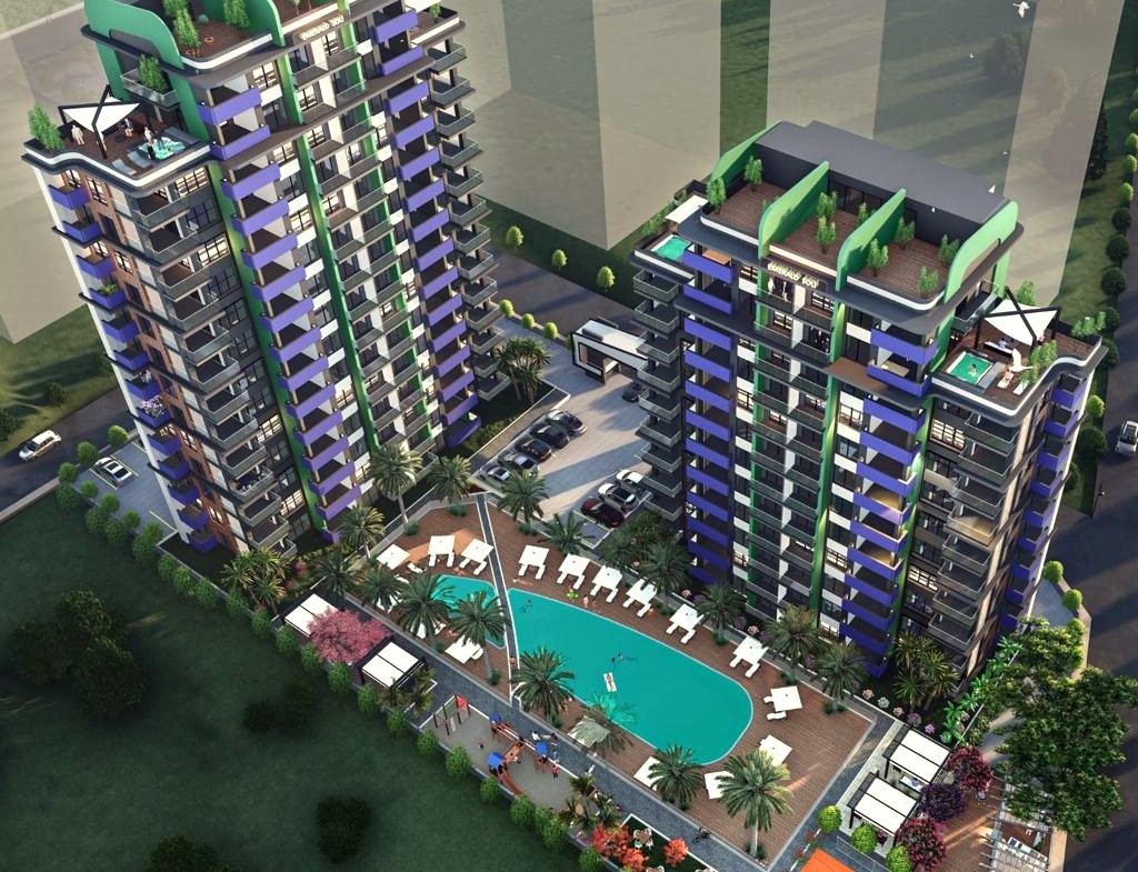 Квартиры с двумя спальнями в готовом комплексе с просторной территорией «EMERALD SOLI RESIDENCE» в 900 метрах от песчаных пляжей и моря в развитом районе Мерсина – Мезитли (Mersin, Mezitli).