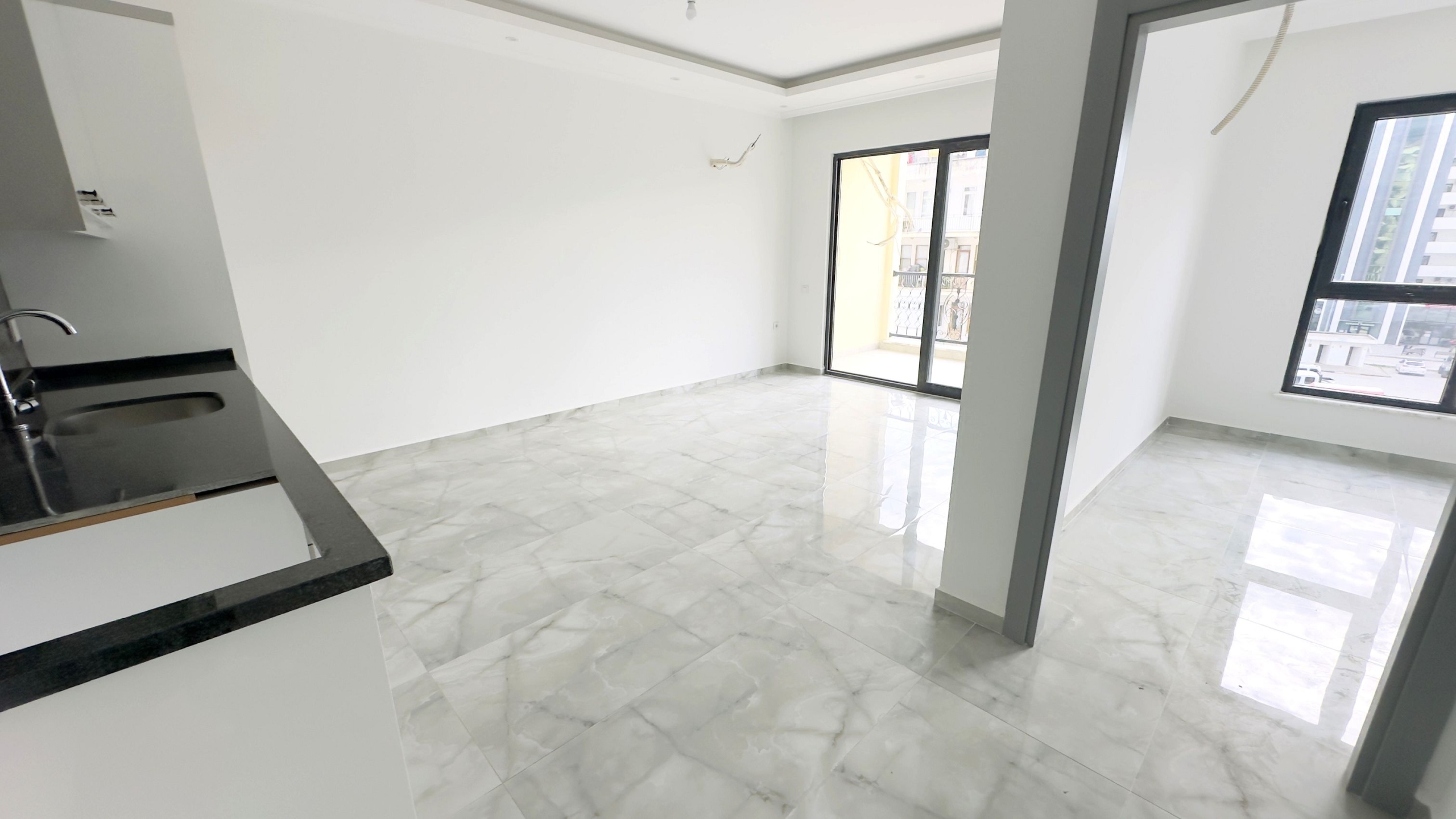 • 1+1 квартира – 48 м2, 2 этаж (уровень 3,5), южная сторона, 1 гостиная с кухней американского типа, 1 спальня, 1 санузел, 1 балкон, без мебели и бытовой техники.