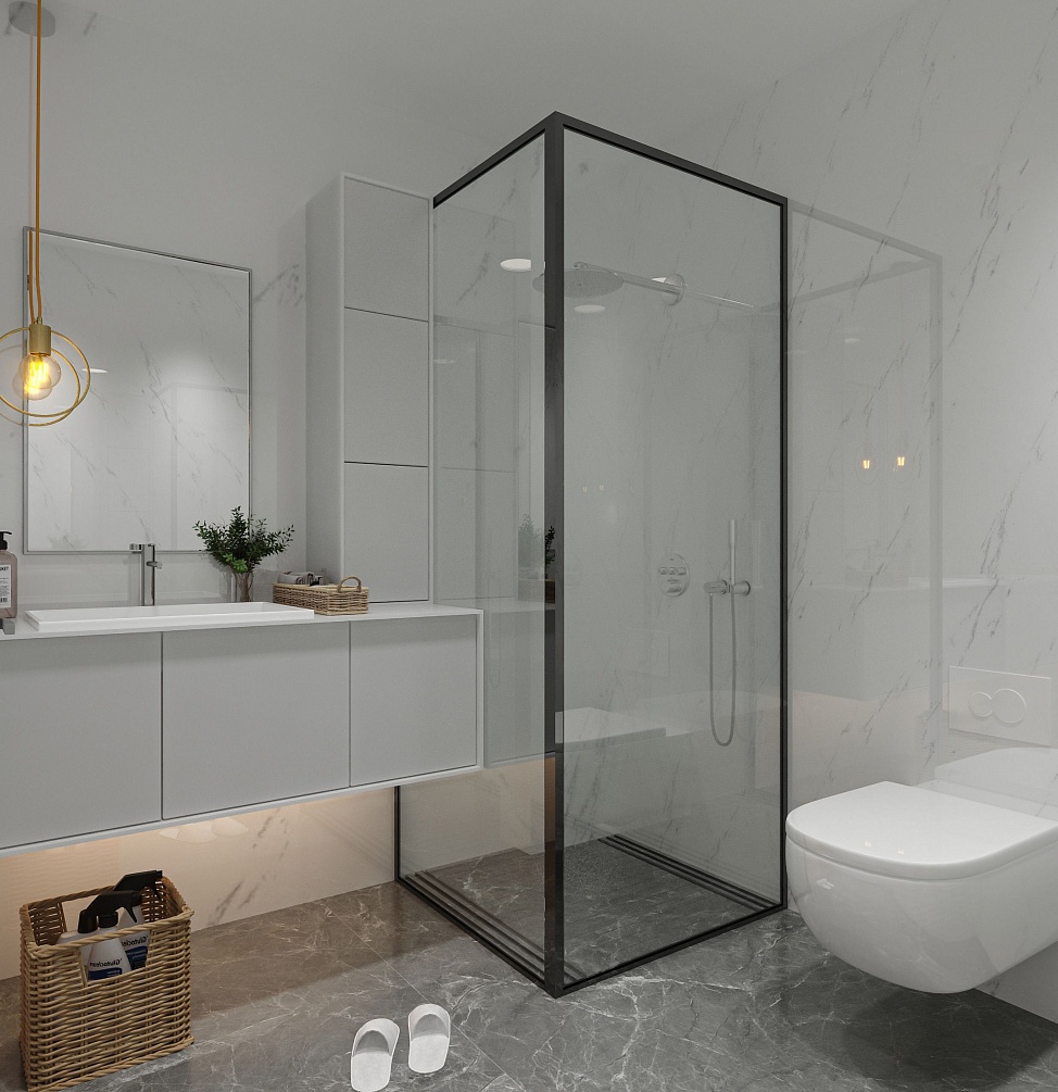 • оборудованный санузел (душевая кабина, комплект сантехники, встроенная мебель, настенное зеркало)