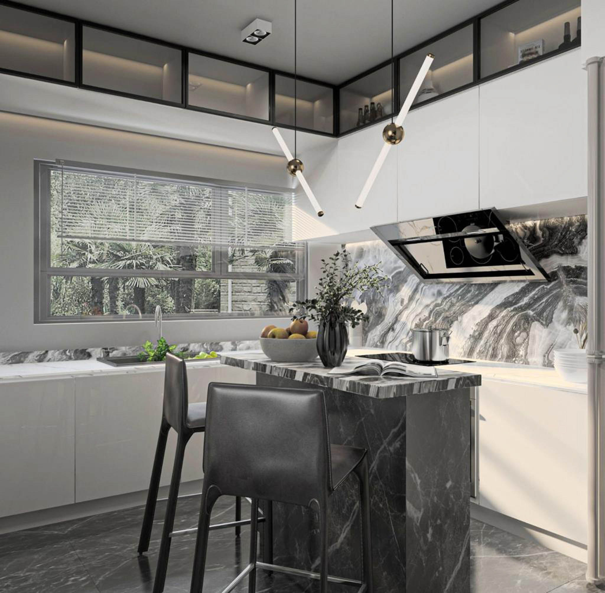 • встроенный кухонный гарнитур с гранитной рабочей поверхностью